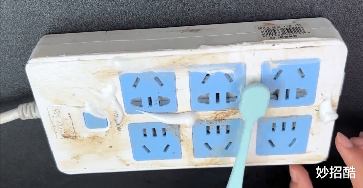 这时就可以在插座表面挤上一点牙膏,然后偷偷拿出老公用的牙刷来,在插座表面刷一下,插座表面的污渍就可以去除干净,然后再找一块干的抹布,把插座表面剩余的牙膏擦掉,就可以清洁干净了。因为我们清理插座时,没有用一滴水,非常安全,不用担心发生触电危险。